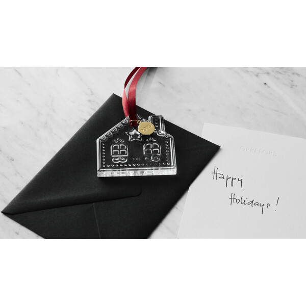 Orreforsin Annual ornament 2022 Nivis on lumihiutaleen muotoinen, muistuttaen Carat-sarjan epäsäännöllistä ilmettä. Siinä on valkoisessa nauhassa hopeinen riipus kaiverruksella 2022. Annual Ornament Nivis on pakattu lahjapakkaukseen ja sen on suunnitellut Lena Bergström.