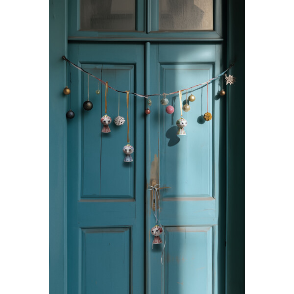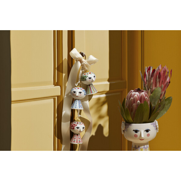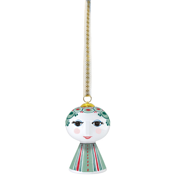 Levitä värikäs persoonallisuutesi ja luo tilaa ilolle Bjørn Wiinbladin Eevan avulla. Heti kun kutsut Eevan kotiisi, tämä suosittu sarja Bjørn Wiinbladin tunnusomaisilla linjoilla levittää iloa jokaiseen nurkkaan. Koko uransa ajan Bjørn Wiinblad tutki värejä, muotoja ja kuvioita – ja ikonisen Eevi-riippukoristeen avulla voit helposti ja koristeellisesti antaa luovuuden virrata kodissasi. Bjørn Wiinblad edustaa kaikkea leikkisää, omaperäistä, luovaa ja ihanaa. Ja tämän kauniin Eevi-riippukoristeen avulla, joka on pääasiassa vihreissä sävyissä ja inspiroitunut Bjørn Wiinbladin legendaarisesta suunnitteluarkistosta, luot nopeasti ilon ja luovuuden ilmapiirin, joka ulottuu kodin jokaiseen nurkkaan. Riippukoriste on 7,5 cm korkea ja valmistettu kiiltävästä lasitetusta posliinista värillisillä siirtokuvilla, inspiroituneena Bjørn Wiinbladin alkuperäisestä Eevi-universumista, jossa leveät päät kukkakoristeilla ja kartionmuotoinen vartalo muodostivat perustan. Kasvot mantelinmuotoisine silmineen ja terävine nenineen on piirretty Wiinbladin alkuperäisellä viivalla, kun taas värikäs mekkomalli on moderni tulkinta hänen arkistoillustratioistaan. Iloisella hymyllään, punaisilla poskillaan ja värikkäillä koristeillaan Eevi ilmentää Bjørn Wiinbladin olemusta henkilönä ja taiteilijana. Hänen itsevarma, runollinen ja unelmoiva ilmeensä on jotain "suurempaa kuin elämä", mikä tekee hänestä katseenvangitsijan koosta riippumatta. Hän koristaa ja levittää iloa joulukuusessa, ikkunassa tai oksilla, joissa hän roikkuu kultafoliopainetussa nauhassa ja alkuperäisessä Bjørn Wiinblad -koristeessa – ja valaisee elämää juuri niin kuin Bjørn Wiinblad rakasti. Bjørn Wiinblad oli elämäniloinen taiteilija, jolla oli suuri ja värikäs persoonallisuus, joka kulki omaa tietään eikä pelännyt unelmoida ja ajatella suuria. Tämä sielu on myös Eevassa, joka säteilee itsevarmuutta ja inspiroi meitä ilmaisemaan omaa tyyliämme ja persoonallisuuttamme luovien koristeiden kautta. Yksi asia on varma: Ei koskaan tule tylsää, kun Eevi muuttaa sisään.