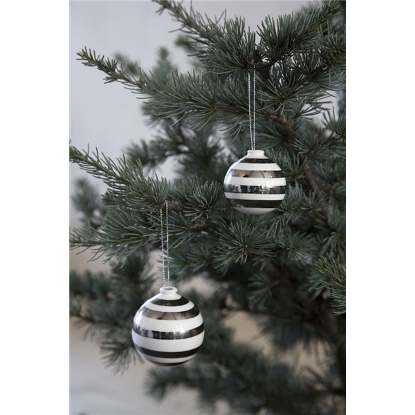 Anna Kählerin eleganttien Omaggio-joulupallojen ikonisine raitoineen koristaa kotiasi jouluna. Käsinmaalatut raidat heijastavat hienostuneesti valosäteitä luoden kauniin kimmeltävän valon. Pallot sopivat myös pääsiäsioksille tai lastenhuoneen ikkunaan.