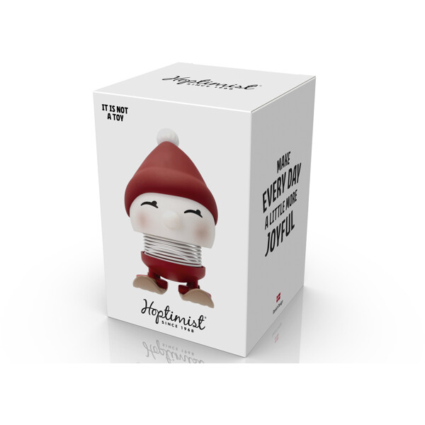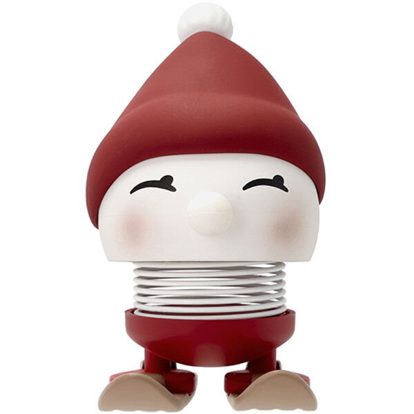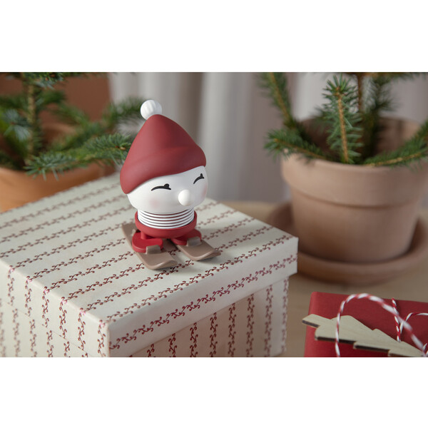 valkoisen lumen päällä vuorella. Soft Skiing Bimble on valmiina punaisessa tupsulakissaan - sekä odottava että ylpeä -