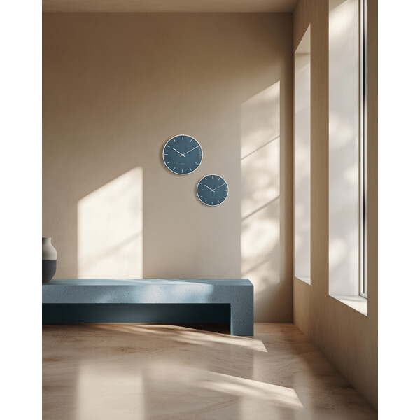 Muotoilu on ajaton, klassinen ja täysin yksinkertainen – mutta samalla luonteenomainen. Seinällä leijuva City Hall -seinäkello roikkuu melkein kuin veistos kodissa, eleganttina edustajana tanskalaisen muotoilun parhaimmistolle. Tämä City Hall -seinäkello toimitetaan sinisellä kellotaululla, kun taas kotelo, osoittimet ja tuntimerkinnät ovat kiiltävässä hopeaviimeistelyssä, joka huokuu eksklusiivisuutta. Käytä sitä klassisessa sisustuksessa toiminnallisena muotoiluelementtinä, jolla on vahva visuaalinen läsnäolo. Ja vaikka kellolle on annettu väripäivitys, on silti Arne Jacobsenin ainutlaatuinen muotokieli selvästi esillä – ja luo jännittävän kontrastin klassisten muotojen ja Jacobsenin suuren muotoiluarkiston innovatiivisen värityksen välillä. Elementtejä, jotka antavat kellolle paljon luonnetta – hienovarainen kannanotto, joka ei koskaan häiritse huonetta. Silti saat Arne Jacobsen Clocksin kellolla muotoilukuvakkeen, joka voi kohottaa tai täydentää mitä tahansa huonetta.