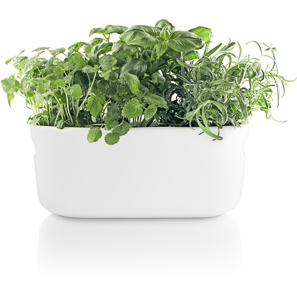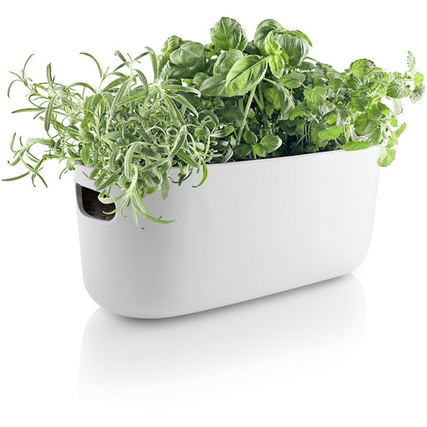 Itsekasteluruukku Eva Sololta. Pidä yrttipuutarhaa keittiössä ja anna sen hoitaa itse itsensä. Herb organiser-sarjan itsekastelusysteemi pitää huolta ettei kasveja tarvitse kastella päivittäin. Se antaa yrteille parhaat kasvun edellytykset, koska itsekasteluruukku kuljettaa veden ruukun pohjassa olevasta säiliöstä kasveille. Vesisäiliöön mahtuu 0,5 litraa vettä, joten sinun tarvitsee vain muistaa säännöllisesti täyttää säiliötä, niin ruukun kastelujärjestelmä hoitaa loput. Herb organiser-ruukussa on käytännölliset kahvat sivuissa, joten sitä on helppo siirrellä. Ruukkuun mahtuu kolme normaalikokoista yrttikasvia niiden omissa muoviruukuissa. Kaikki muut osat, paitsi kukkalaatikko, ovat konepestäviä.
