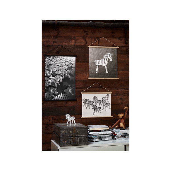 Muotoilu: Kay Bojesen Kay Bojesenin leikkisät luomukset ylistävät mielikuvitusta ja sisäistä lastamme, ne ovat klassikoita ja rakastettuja ympäri maailmaa. Kayn puuhahmot ja julisteet ovat täydellisiä omaan kotiin ja lahjaksi esim. syntymäpäivänä, valmistujaisissa, kastejuhlassa tai häissä. Tämä musta-valkoinen taidekuva Kay Bojesenin seeprasta on valmistettu canvakselle, raaminaan mustapestattu puu. Se voidaan ripustaa seinälle mukanatulevan mustan nahkaremmin avulla. Taidekuvan on suunnitellut HageDornHagen, joka on tulkinnut Kay Bojesenin alkuperäisseepran. Koko: 40x56 cmMateriaali: Canvas 100% puuvillaa, tammilista