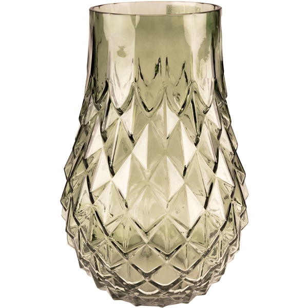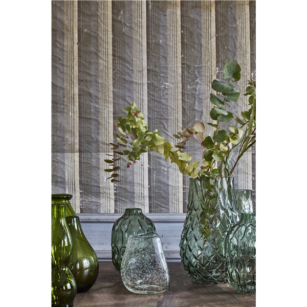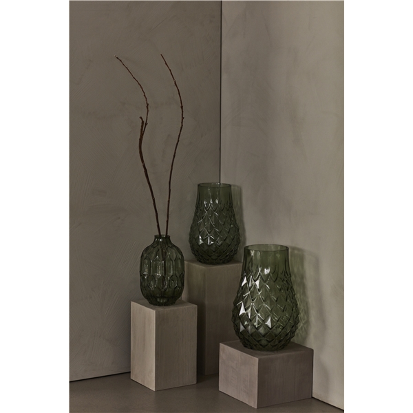 Vihreä maljakko Day Homelta. Day Green lasimaljakko on upean muotoinen ja siinä on hieno kaiverrettu kuviointi. Saatavana eri kokoisina.
