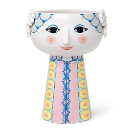 Björn Wiinbladin kaunis maljakko vaaleanpunaisin sävyin hymyilevän Evan kera. Korkea maljakko, johon kukkavihko sopii hienosti. Eva-sarjan maljakko on kiiltävää lasitettua keramiikkaa värillisella kuvioinnilla ja siinä on kukkakoristeet mahdollistava leveä suu ja kartiomainen runko. Yhdistä muihin Björn Wiinbladin keramiikkasarjan naishahmoihin ja iloisenvärisiin kuvioihin.