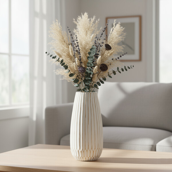 Ainutlaatuinen tekstuuri: Kaunis teksturoitu pinta pystysuorilla uurteilla ja alemmalla kuviolla, ihanteellinen tuomaan orgaanista eleganssia sisustukseesi.