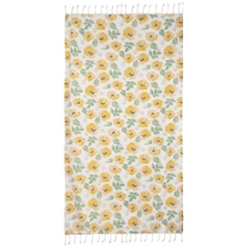 Eden hamam on kauniisti kuvioitu hapsullinen pyyhe, joka on valmistettu ohuesta, kudotusta kierrätyspuuvillasta (70 %) ja polyesteristä (30 %). Kuvio on suunniteltu huolellisesti maalatuin kukkasin pehmeissä keltaisen ja beigen pastelliväreissä. Se kuivuu nopeasti ja on helppo ripustaa. Helppo rullata kokoon ja ottaa mukaan rannalle, uima-altaalle tai kuntosalilaukkuun. Koko 90x170 cm.