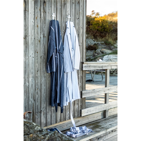 Lord Nelsonin Victory Hamam-kylpytakki on saatavana kahdessa upeassa merisävyssä. Yhdistä kuviot ja värit hamam-kylpypyyhkeeseen. Hamam-kylpytakki on upea ja pehmeä. Takki on kevyt, vie vähän tilaa ja kuivuu nopeasti, joten se on hyvä yhdistettävä hamam-kylpypyyhkeen kanssa.