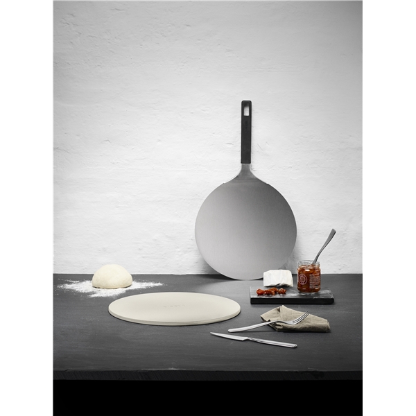 Muotoilu: Eva SoloPizzalasta. Silikonikahva antaa hyvän ja tukevan otteen. Kahva pysyy viileänä käytön aikana