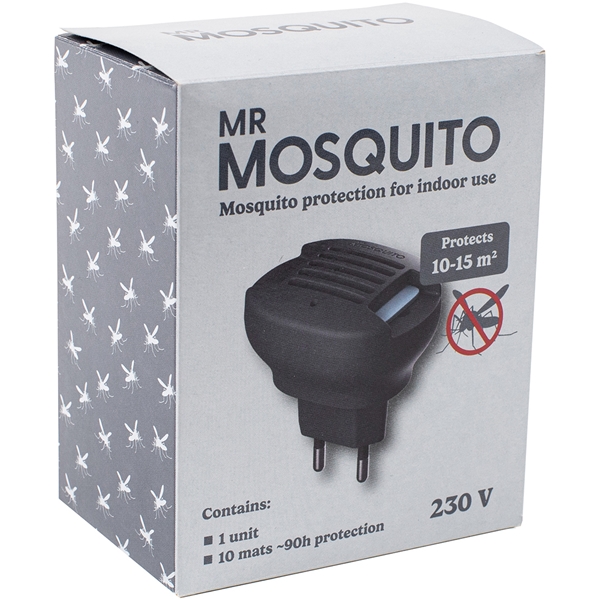 Mr Mosquito suojaa sinua hyttysiltä sisätiloissa. Aseta se makuuhuoneen sähköpistokkeeseen ja nukut rauhallisesti koko yön. Ei ininää korvissa! 1 tabletti riittää koko yöksi, noin 8-10 tunniksi.