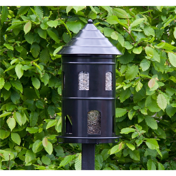 Suunnittelu: Wildlife GardenJättiruokintalaite on todellinen linnunruokintalaite. Säiliöön mahtuu 6 litraa siemensekoitusta. Pikkulinnut istuvat renkaalla ruoan ulkopuolella eivätkä siten pääse saastuttamaan ruokaa tai heittelemään siemeniä ympäriinsä. Siemenastia on helppo poistaa puhdistusta varten. Ruokintalaite asennetaan tolppaan.