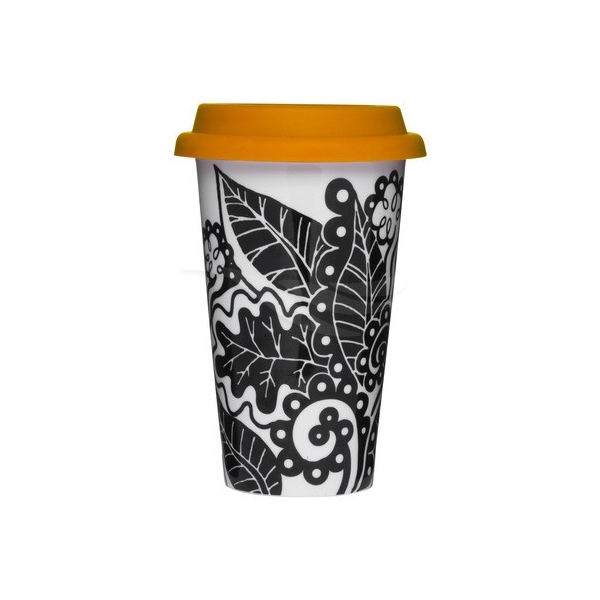 Siisti tuplapinnoitteinen take away-muki posliinista silikonikannella. Saatavana useana upeana kuviona! Mitta: 25cl Korkeus 150mm