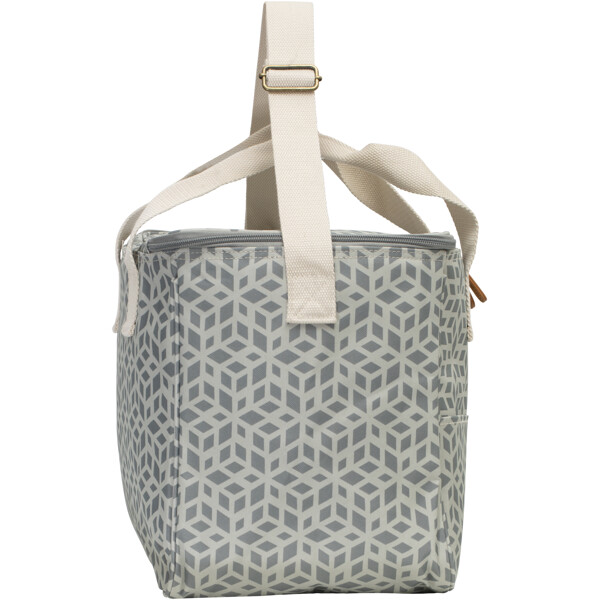 Kylmälaukku säilyttää kylmyyden pitkään paksun PEVA-pehmusteen ansiosta, joka on myös helppo pyyhkiä puhtaaksi. Se on valmistettu kierrätetystä materiaalista PET-pulloista, ja siinä on puuvillaiset ja keinonahkaiset kahvat ja olkahihna.