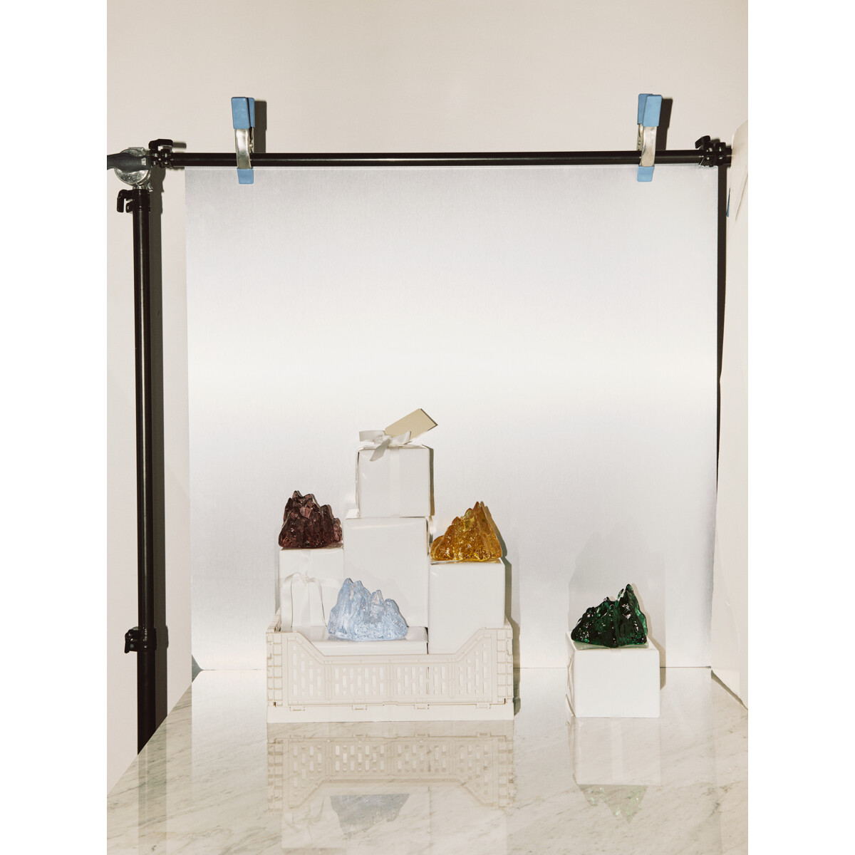 The Rock -sarja luotiin kunnianosoitukseksi ja parafraasiksi 50-vuotisjuhlavuoden Snowballille; Ann Wolffin ikoniselle klassikolle. The Rock käyttää uudelleen tuttua epäsäännöllistä pintaa, se on oma taideteoksensa. Lasinen lyhty on saatavana eri väreissä, dramaattisilla silueteilla ja nykyaikaisella väripaletilla. Suunnittelija: Hanna Hansdotter.