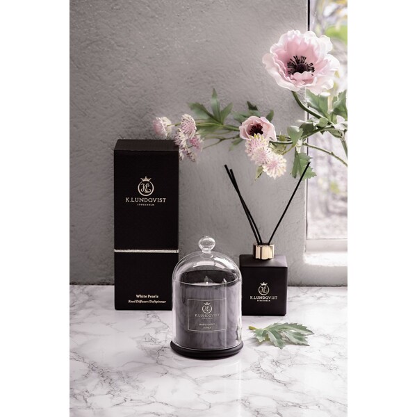 K. Lundqvistin tuoksukynttilä on valmistettu soijavahasta ja palaa tasaisesti ilman nokeamista. Mukana tulee suuri kaunis lasikupu ja ylellinen laatikko.
