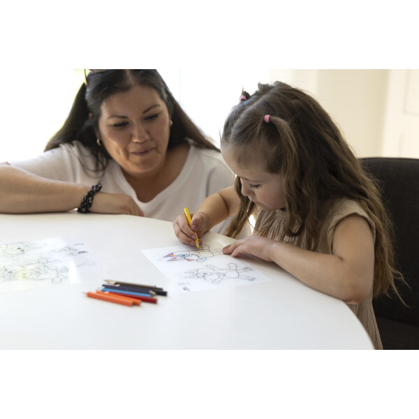 Väritä, leikkaa ja katso, kuinka hahmot kutistuvat uunissa, jolloin niistä tulee kovia ja kestäviä, täydellisiä avaimenperiksi tai koristeiksi lasten reppuun.