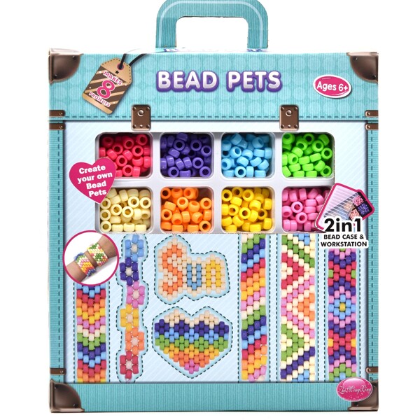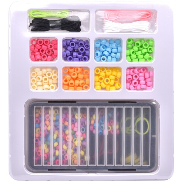 Kaunis lahjapakkaus, jossa voit tehdä omia rannekoruja värikkäillä helmillä.