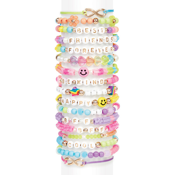 Älykkäillä yksityiskohdilla, jotka auttavat sinua asettamaan helmikuvioita, mittaamaan narun pituutta ja lajittelemaan valittuja helmiä, on helppo luoda. Lapset voivat helposti säilyttää kaikki tarvikkeensa ja käyttää mukavaa kahvaa viedäkseen setin leikkitreffeille tai minne tahansa inspiraatio iskee!
