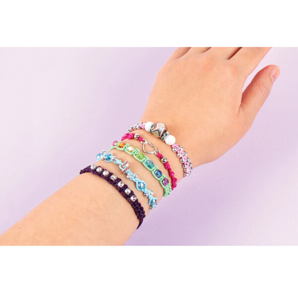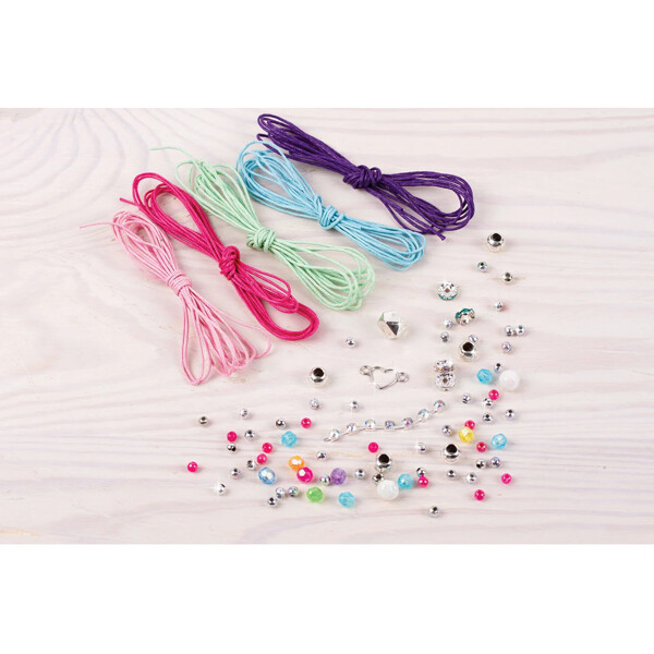 Opi yksinkertaisia solmimistekniikoita luodaksesi viisi kauniisti suunniteltua rannekorua tämän kattavan pakkauksen mix-and-match -vahatun narun ja trendikkäiden helmien avulla.