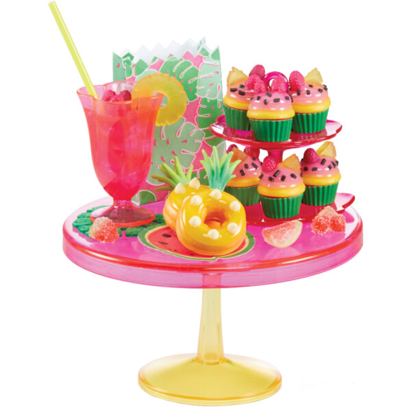 Jokainen kapseli sisältää miniatyyrejä, jotka sopivat yhteen kolmesta eri trendikkäästä juhlateemasta: Trooppinen, Dino ja Sateenkaari. Jokaisessa teemassa on 3-5 palloa, joita sinun tulee etsiä, jotta juhla olisi täydellinen. 3 palloa sisältää ruokaa/juomaa, joka sopii teemaan, ja 1 pallo sisältää teeman koristeosia.