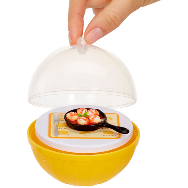 Jokainen pallo sisältää astioita, keittiövälineitä ja 4-5 ainesosaa herkullisten ruokien luomiseen. Pallossa on myös hieno pöytä, jota voit käyttää luomustesi esittelyyn ja niiden esittelemiseen ystäville.