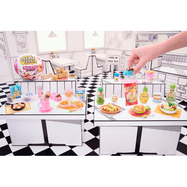 Tutustu MGA:n Miniverseen, Make It Mini Food! Alkuperäinen keräilyesine, jonka voit valmistaa, kovettaa ja esitellä. Jokainen pallo sisältää realistisia mini-"ainesosia" ja keittiötarvikkeita, joiden avulla voit tehdä omia minikopioita suosikkiruoistasi ja -juomistasi.