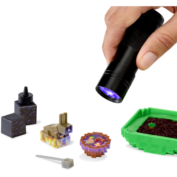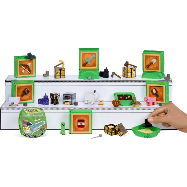 Luo, koveta, esittele ja kerää kaikki suosikki Minecraft-esineesi minikoossa! Jokainen pallo on yllätys ja sisältää kaiken, mitä tarvitset luodaksesi yksityiskohtaisia ja realistisia kopioita ikonisista Minecraft-esineistä. Avaa pallo ja paljasta yllätys, seuraa ohjeita ja katso, kuinka minisi muotoutuu. Kun se on kovetettu auringonvalossa tai 365 nm UV-lampun alla, keräilyesineesi on valmis esiteltäväksi omassa Minecraft-maailmassasi!