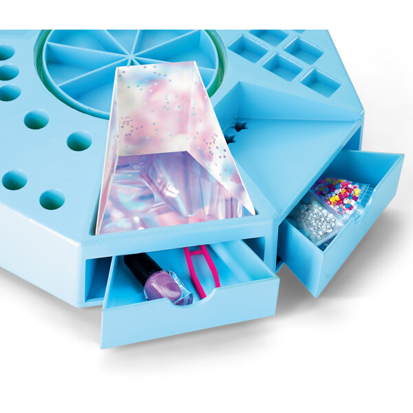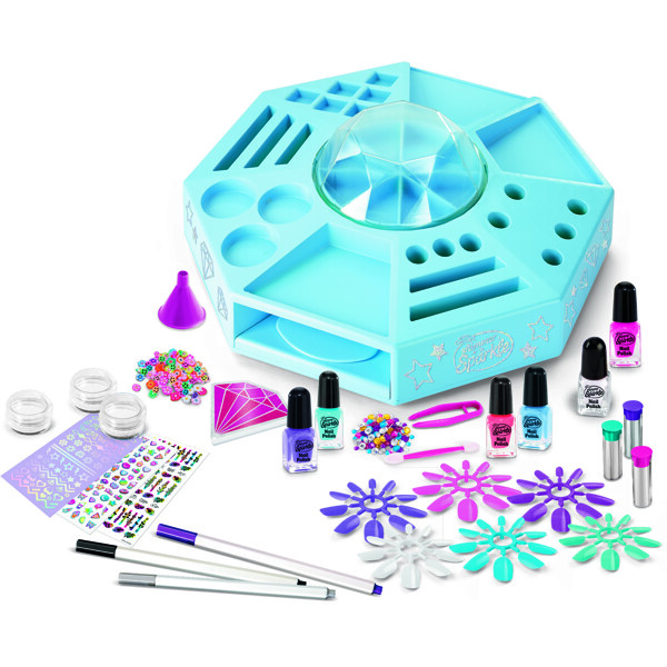 ULTIMAATTINEN KYNSISETTI – Luo kimaltelevat kynnet loputtomilla tyylimahdollisuuksilla! Suunnittele satoja upeita manikyyrejä värikkäiden kynsilakkojen, kynäkynien, glitterin, paljettien ja muiden avulla. Kaikki mitä tarvitset kotona olevaan kynsistudioon!UPEITA MANIKYYREJÄ – Viilaa, maalaa ja koristele kyntesi 6 upealla kynsilakalla. Lisää häikäiseviä yksityiskohtia kynäkynillä, glitterillä, hohdejauheella, paljeteilla ja tarroilla trendikkään ja glamourin lopputuloksen saamiseksi!TODISTI TOIMIVA KYNSIKUIVAIN – Sisältää todellisesti toimivan kynsikuivaimen ammattimaisen salonkitunnelman luomiseksi. Maalaa vain kynnet, aseta ne kuivaimen alle ja nauti nopeasti kuivuvista, pitkäkestoisista tuloksista. Sisäänrakennetut valot tekevät jokaisesta manikyyristä erityisen!KIMALTELEVA LOPPUTULOS – Personoi kyntesi 3 pussilla paljetteja, 3 pussilla glitteriä, 3 pussilla hohdejauhetta, 3 kynäkynällä, 3 arkillä kynsitarroja ja 72 itseliimautuvalla kynsitarralla. Mukana olevat ohjeet näyttävät, kuinka luot satoja häikäiseviä malleja jaettavaksi ystävien kanssa!SETTI SISÄLTÄÄ:1 x Kynsikuivain6 x Kynsilakka3 x Pussia Paljetteja3 x Kynäkynää3 x Arkkia Kynsitarroja72 x Itsestään Liimautuvaa Kynsitarraa3 x Pussia Glitteriä3 x Pussia Hohdejauhetta1 x Ohjeet