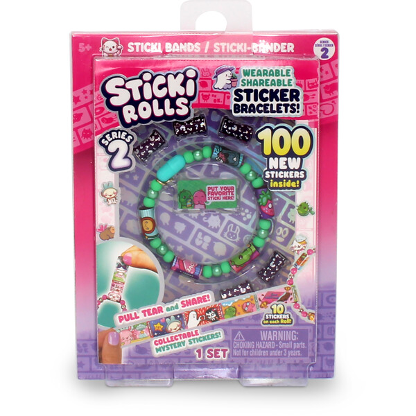 Sticki Rolls Sticki Series 2 on täällä! Kerättävänä on peräti 1 200 täysin uutta tarraa – uusia malleja, uusia hahmoja ja lisäksi muutama fanien suosikki sarjasta 1 tekee paluun! Lisäksi on viisi täysin uutta holografista tyyliä kerättävänä, kaikilla harvinaisuustasoilla.Unohda tarralevyt – Sticki Rollsin avulla tarraleikki muuttuu trendikkäiksi asusteiksi! Jokainen Sticki Band -rannekoru sisältää 5 rullaa tarroja, ja jokaisessa rullassa on 10 ainutlaatuista Kawaii-inspiroitua mallia. Vedä, kierrä ja liimaa – helppoa ja hauskaa!Lisäksi mukana on kaksi salaperäistä Mystery Reveal Sticki Rollsia, mikä antaa yhteensä 70 tarraa jokaiseen settiin! Koristele puhelimesi, juomapullosi tai kannettavasi – tai vaihda ystävien kanssa rakentaaksesi kokoelmasi. Ainutlaatuisen Quick-Grip Clasp -järjestelmän ansiosta rullien vaihtaminen ja loputtomien yhdistelmien luominen on superhelppoa.
