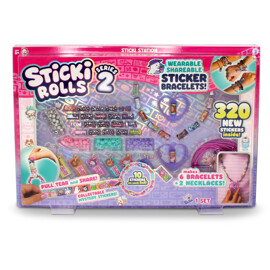 Sticki Rolls Sticki Series 2 on täällä!Kokoa kaikki 1 200 täysin uutta tarraa jännittävillä kuvioilla, uusilla hahmoilla ja muutamien fanien suosikkien paluulla sarjasta 1! Löydä lisäksi viisi täysin uutta holografista tyyliä, joita voi kerätä kaikilla harvinaisuustasoilla.Tämä paketti sisältää:Sticki Rolls -rannekkeen täysin uusilla Series 2 -tarroilla7 ylimääräistä MYSTERY Sticki RollsiaHauska ja interaktiivinen kirja, jossa on 50 aktiviteettisivua, jotka auttavat sinua pitämään Sticki-kokoelmasi siististi järjestettynäYhteensä 12 Sticki Rollsia, joista jokaisessa on 10 ainutlaatuista Kawaii-tyylistä kuviota sarjasta 2, saat yhteensä 120 tarraa, joita voit vetää ulos, kiertää ja asettaa Sticki-kirjaasi! Kaikki sivut on laminoitu, mikä tekee tarrojen poistamisesta ja uudelleenkäytöstä helppoa. Pidä kirjaa siitä, kenelle annoit tarroja ja keneltä sait niitä – täydellinen tapa rakentaa ja vaalia muistojasi tarranjakamisesta.Sticki S2 -kirja on paras tapa rakentaa ja nauttia Sticki Rolls -kokoelmastasi.Sisältö:1 ranneke120 tarraa (12 Sticki Rollsia)18 helmeä1 joustava naru lukolla1 riipus1 Sticki-kirja1 keräilyopas