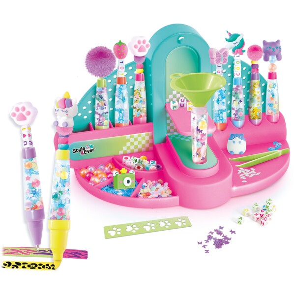 Luo oma kokoelmasi DIY-kuulakärkikyniä ja korostuskyniä! Käytä "tehdasta" täyttääksesi kynäsi, lisää vettä ja koristeita – ja tee niistä täysin ainutlaatuisia, aina pyyhekumia myöten! Koristele 8 kynää ja korostuskynää monilla hauskoilla tarvikkeilla, jotka sisältyvät pakkaukseen.Sisältää:- 1 studio- 6 DIY-kuulakärkikynää- 6 irrotettavaa kärkeä- 2 DIY-korostuskynää- 1 pinsetit, 1 suppilo, 1 lusikka- 1 arkki tarroja- 2 kuviomallia- 8 koristeellista pyyhekumia- 5 pussia koristeita- 3 pussia helmiä- 1 pussi pompomeja- 1 käyttöohje
