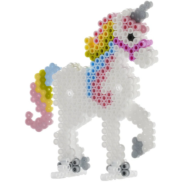 Hama Midi Box Unicorns 2000 kpl on setti, joka sisältää noin 2000 helmeä, 1 suuren kuusikulmaisen helmialustan (nr276), 4 helmipidikettä, 1 HamaGem, kuviointimallin, ohjeet ja silityspaperin.