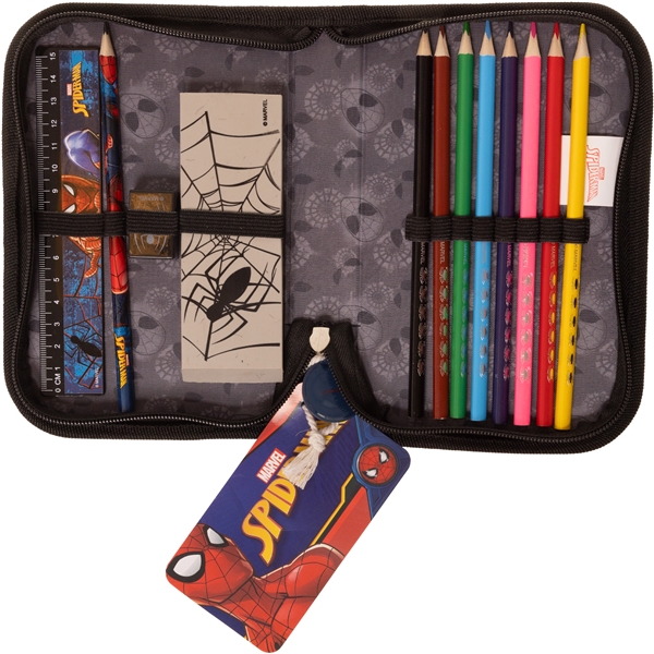 Käytännöllinen kynäkotelo, joka on täynnä kaikkea, mitä lapsesi voi tarvita oppitunnin aikana. Kynäkotelossa on kynä, viivoitin, pyyhekumi, teroitin ja useita värikyniä.