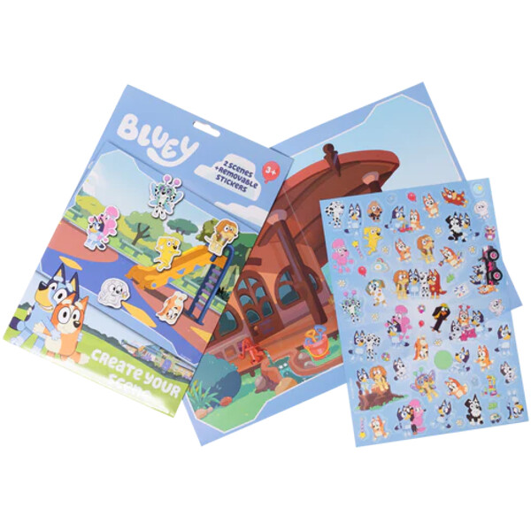 Luo oma kohtaus Blueyn maailmassa! Täydellinen askartelu, joka pitää lapset kiireisinä pitkään. Voidaan käyttää uudelleen ja uudelleen, sillä tarrat ovat irrotettavia.