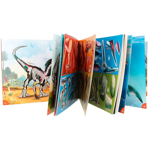 Luo oma dinomaailmasi tämän huikean Dino World -askartelukirjan avulla. Sinä päätät missä dinot asuvat mukana seuraavien tarramerkkien avulla. Yksityiskohtainen ja ohjeellinen tarra- ka värityskirja kaikille dinofaneille. Kirja tarjoaa viihdykettä tunneiksi ja lapsi saa mahdollisuuden haastaa mielikuvituksensa ja hienomotoriikkansa tuottavalla tavalla.