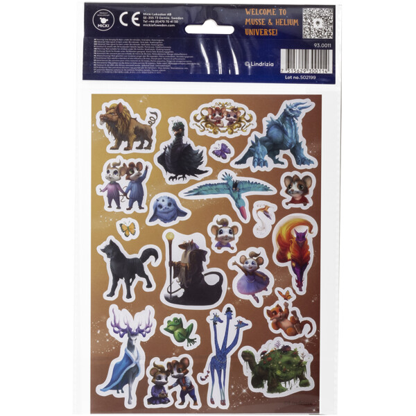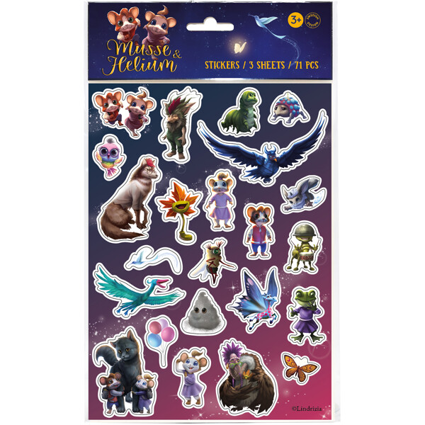 Setti sisältää 71 maagista paperitarraa kaikille pienille Musse & Helium -faneille. Kolmen arkin verran täynnä Mussea & Heliumia ja heidän ystäviään, lapset voivat askarrella ja koristella kaikkea piirustuksista juhlakutsuihin. Tarrat ovat helppokäyttöisiä, täydellisiä sekä leikkihetkiin että lahjaideoiksi!