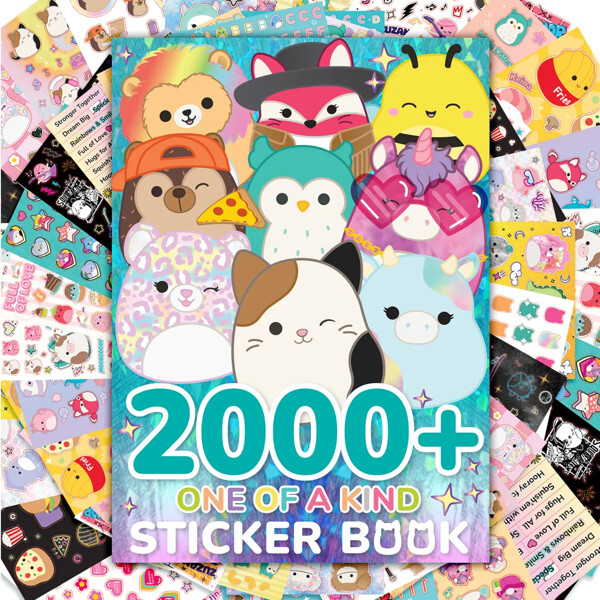 Valmistaudu puristamaan, liimaamaan ja levittämään iloa Squishmallowsin 2000+ ainutlaatuisen tarrakirjan avulla!
