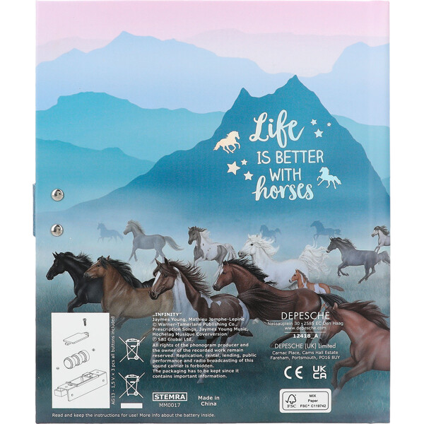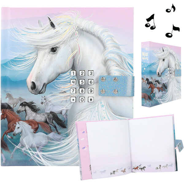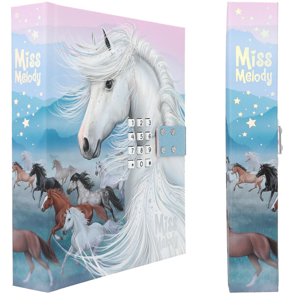 Kaikki ajatuksesi, salaisuutesi ja henkilökohtaiset muistiinpanosi säilytetään erittäin turvallisesti tässä kauniissa Miss Melody -päiväkirjassa, jossa on koodi, jonka vain sinä tiedät. Lisäksi hittikappale INFINITY soi noin 20 sekuntia, kun avaat sen.