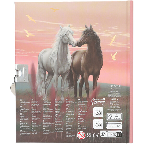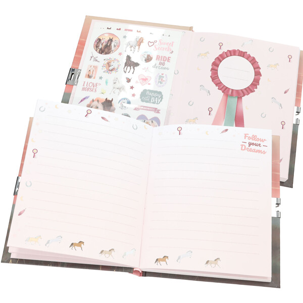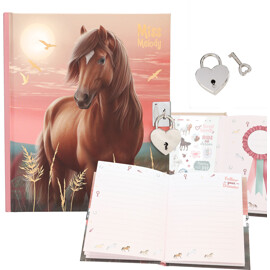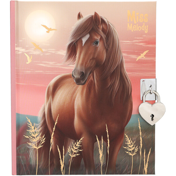 Kaikki ajatuksesi, salaisuutesi ja henkilökohtaiset muistiinpanosi säilyvät turvallisesti tässä hienossa Miss Melody -päiväkirjassa, jossa on 192 viivoitettua sivua, sydämenmuotoinen lukko ja avain. Kirja sisältää lisäksi 2 arkkia hienoja tarroja, joilla voit koristella sivuja.