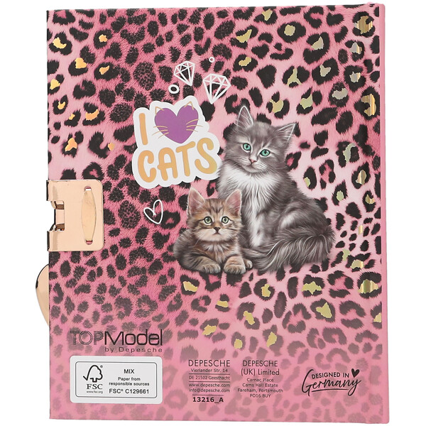 Tämä hieno päiväkirja värikkäällä leo-ilmeellä ja siistillä malliaiheella on varustettu suloisella sydämenmuotoisella lukolla, jossa on kaksi avainta, ja kauniisti viivoitetuilla sivuilla sisäpuolella. Yhteensopiva kynä kirjoittaa näkymättömällä musteella, joka tulee näkyviin vain, kun sitä valaistaan kynän timanttihuipusta tulevalla UV-valolla. Kynän paristot ovat vaihdettavissa.