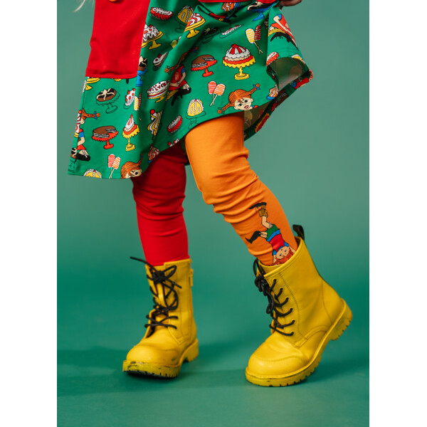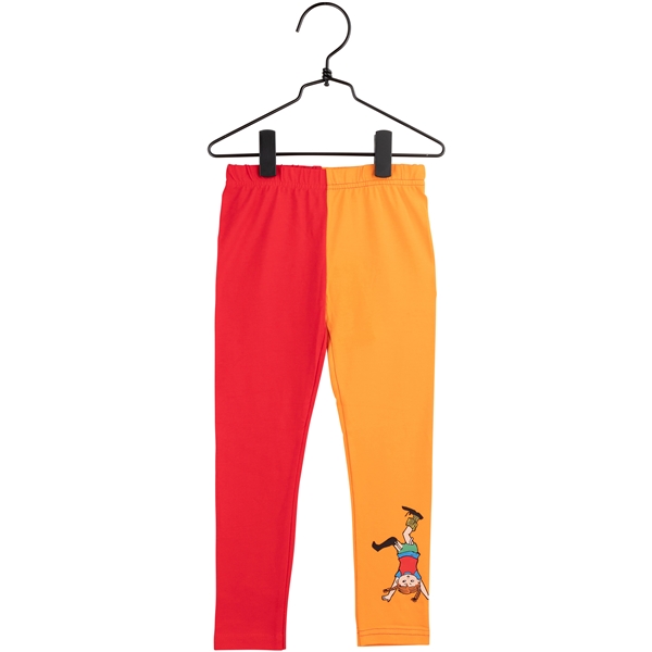 Peppi Leggingit Punainen/Oranssi ovat ihanan värikkäät ja pehmeät legginsit punaisen ja oranssin värein. Yhteen sääreen on painettu kuva Pepistä seisomassa käsillään.