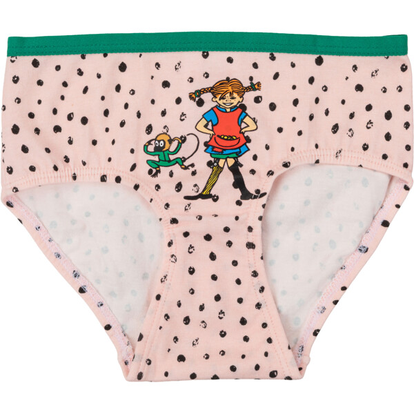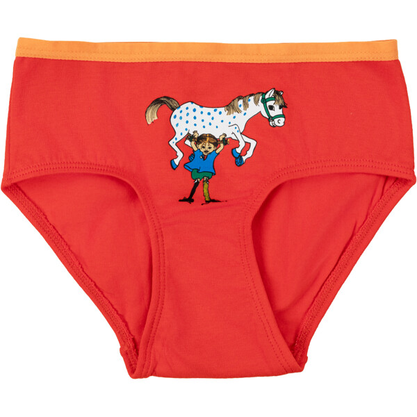 Pehmeät ja mukavat Peppi Pitkätossu -alushousut lapsille. 2-pack, jossa yhdet alushousut ovat vaaleanpunaiset ja toiset punaiset, molemmissa etupuolella painatus ja kontrastiväriset ohuet reunat ylhäällä. Valmistettu pehmeästä puuvillasekoitteesta. Öko-tex.