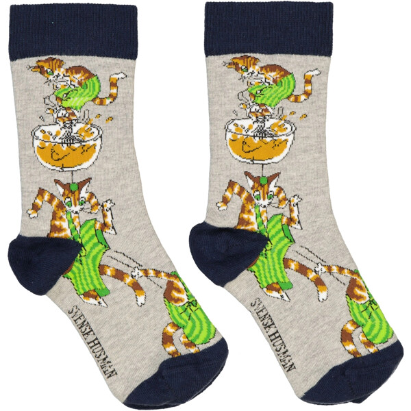 Tee arjesta hieman hauskempaa näillä värikkäillä lasten sukilla, joissa on rakastetut Pettson ja Findus -aiheet! Tässä 2-pakkauksessa saat kaksi erilaista kuviota – yhden Pettsonilla ja hänen klassisilla kanelipullillaan, ja toisen Finduksella täydessä vauhdissa, juuri sellaisena kuin hänet tunnemme. Täydelliset pienille jaloille, jotka eivät koskaan pysy paikallaan! Pitää värin ja muodon myös monien pesukoneessa seikkailujen jälkeen.