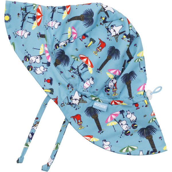 Muumi-aurinkohattu suojaa lastasi auringon säteiltä. Siinä on leuan alle solmittava nauha, joka pitää hatun turvallisesti lapsen päässä, sekä takana kiristysnauha, jolla kokoa voi säätää.