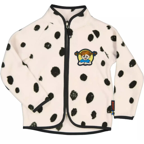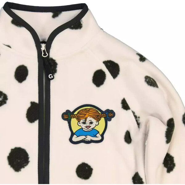 Tämä pehmeä ja lämmin fleecetakki on yhtä vallaton kuin Peppi itse! Pikkukaverin pilkut kuviona tekevät siitä todellisen suosikin pienille seikkailijoille. Täydellinen kevät- ja syystakiksi tai mukavaksi kerrokseksi kylmempinä päivinä. Takissa on joustavat reunat, jotka pitävät sen mukavasti paikoillaan, olipa kyseessä puuhun kiipeäminen tai vesilätäköissä hyppiminen. Edessä oleva vetoketju tekee takin pukemisesta helppoa – kuka nyt haluaisi tuhlata aikaa, kun maailmoja on löydettävänä? Pehmeä ja vallaton fleecetakki pienille tutkimusmatkailijoille, jotka eivät pelkää tehdä maailmasta hieman hauskempaa.Geggamoja fleece on huolellisesti valittu olemaan turvallinen ja lempeä lapsellesi. Vapaa haitallisista aineista, se tarjoaa pehmeän ja turvallisen tunteen ilman kompromisseja. Yritys varmistaa, ettei materiaalissa ole ei-toivottuja kemikaaleja – vain pehmeää lämpöä ja mukavaa laatua, joka kestää pitkään. Turvallinen valinta sekä lapsille että ympäristölle.