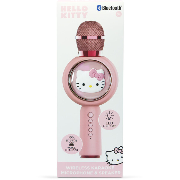Valmistaudu loistamaan lavalla Hello Kitty LED-karaokemikrofonilla, joka on pehmeän vaaleanpunainen ja ruusukultainen.