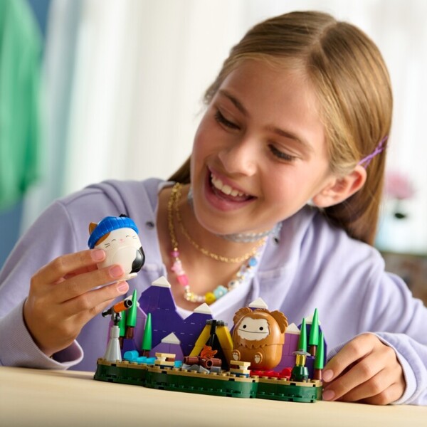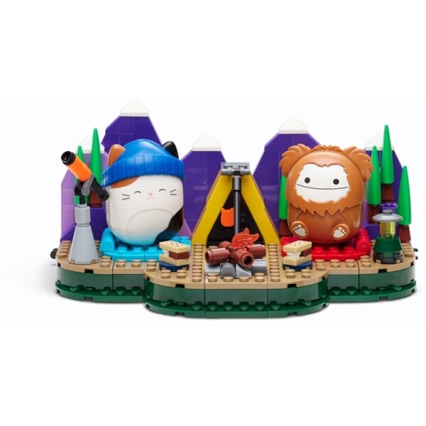 Nämä ovat ensimmäiset Squishmallows rakennuslelut, jotka ovat saaneet inspiraationsa nuotion ympärillä vietetystä yöstä ja tuovat luonnon kotiisi erilaisten tarvikkeiden, kuten kaukoputken, teltan, s'moresin, lyhdyn ja nuotion, avulla.