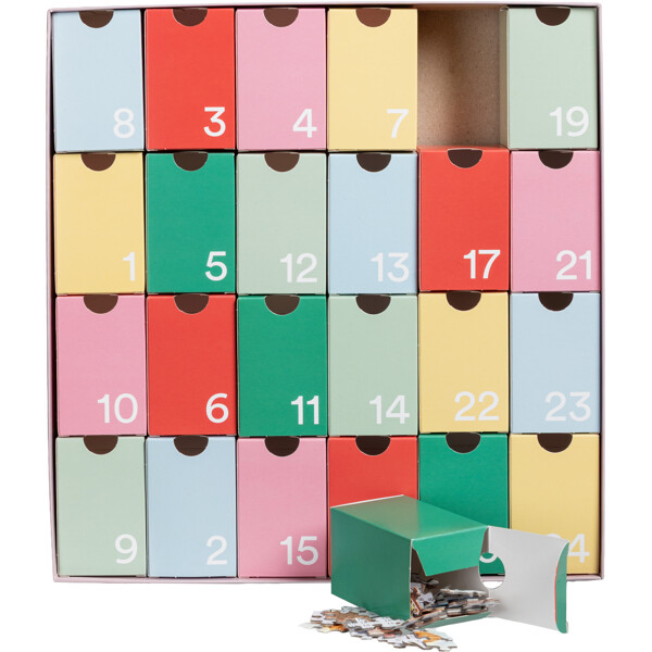 Jännittävä palapelikalenteri, jossa 42 palaa paljastuu joka päivä joulua odotellessa.