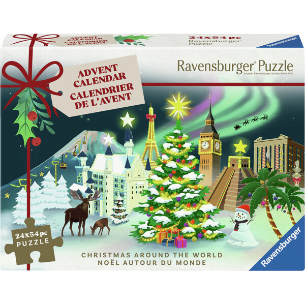 Joulu ympäri maailmaa on ihana adventtikalenteri, jossa on kuvia kaupungeista, maista tai nähtävyyksistä ympäri maailmaa, jotka on koristeltu joulua varten. 24 minipalapeliä, joissa kussakin on 54 palaa.