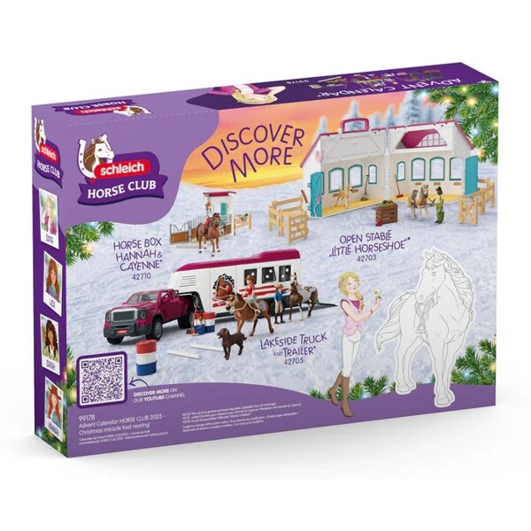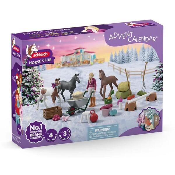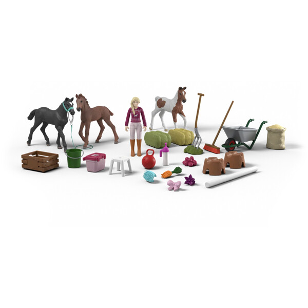 Jokaisen luukun takana joulukalenterissa on joulun ihmeyllätys. Kolme varsaa, jotka ovat saatavilla yksinomaan kalenterissa, sisältyvät. Joulukalenteri sisältää kaiken, mitä tarvitset hevosten hoitoon. Yksi asia on varma: Kolme suloista varsaa ovat innokkaasti odotettuja ja sulattavat jokaisen sydämen heti.